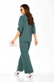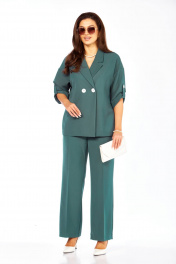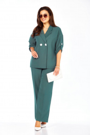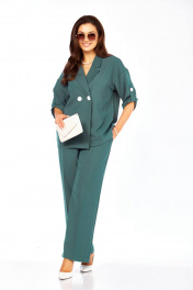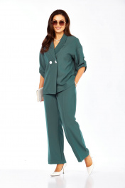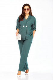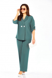 Очень стильный ,элегантный ,модный женский комплект . Состоит их брюк палаццо и жакета прямого силуэта , со спущенной проймой ,что придает свободу движению и комфорта при носке. Интересный дизайн жакета , двубортный с одним рядом крупных пуговиц контрастного цвета. Рукав на пате с пуговицей контрастного цвета меньшего размера. При желании рукав можно удлинить ,расстегнув пуговицу. Длина жакета по спинке от плеча — 70,5 см Брюки палаццо прямые с функциональными карманами ,сзади на резинке. Длина брюк -101