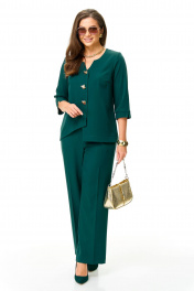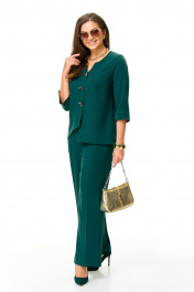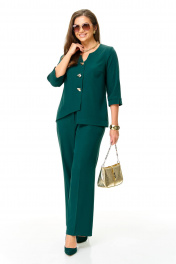 Красивый , элегантный . офисный женский комплект , состоит из жакета и классических брюк , из текстильной ткани хорошего качества. Жакет интересного дизайна , с фигурным вырезом , ,втачным рукавом , с золотыми красивыми пуговицами, одна пола по переду длиннее второй , что придает элегантность этому жакету. Длина жакета сзади от плеча 67 см , рукава 45 см , по низу рукава планка с разрезом посередине , Брюки классические ,прямые , с функциональными карманами по бокам, пояс сзади на резинке. Рост модели 173 см