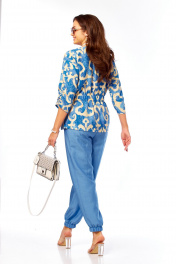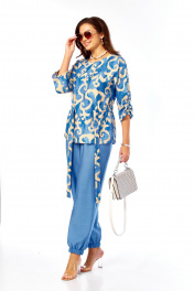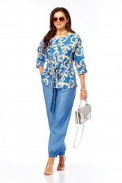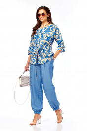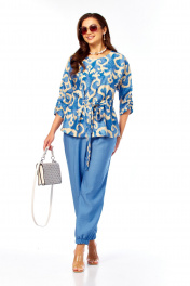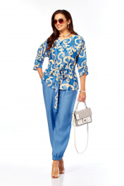 Блуза, брюки Taita plus 2608/1 абстракция/индиго_беж