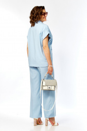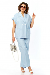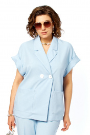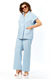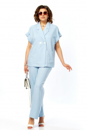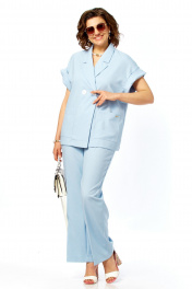 Очень стильный, элегантный, модный женский комплект, из летней ткани лен вишер. Состоит из брюк палаццо и жакета прямого силуэта, со спущенной проймой и манжетой. Интересный дизайн жакета, двубортный с одним рядом крупных пуговиц контрастного цвета. Длина жакета по спинке от плеча — 70 см. Брюки палаццо прямые с функциональными карманами, сзади на резинке. Длина брюк -105 см.