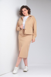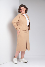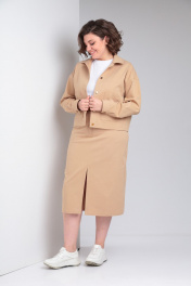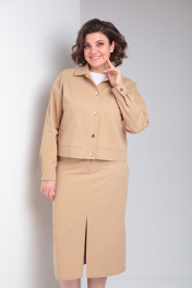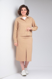 Бежевый джинсовый жакет и юбка с карманами и разрезом Takka Plus 24-218