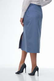 Юбка из костюмной ткани прямого силуэта без подкладки, на поясе, с застежкой на петли и пуговицы. Перед с карманами, разрезом и застежкой -«молнией». Длина 80.