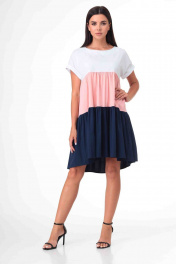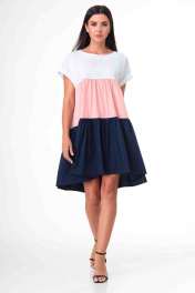 Эффектное платье, свободного силуэта.Платье из легкой хлопковой ткани. Актуальный в наступившем сезоне, свободный силуэт платья, подойдёт для любых типов фигуры! Спинка платья длиннее переда. Рукав цельнокроенный и обработан манжетой, горловина - обтачкой.Платье выполнено в виде ярусов, которые красиво развиваються при ходьбе. Длинна платья по спинке- в 42-46размерах-96см. Рукав от горловины -27см .(На фото модель 44р. рост -168см)