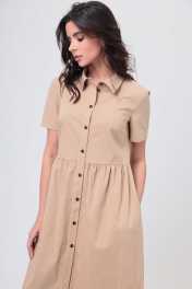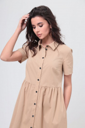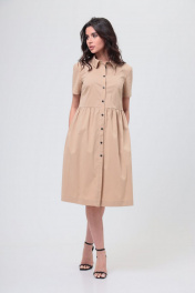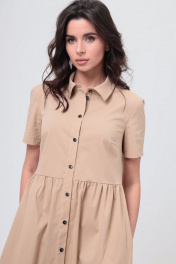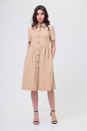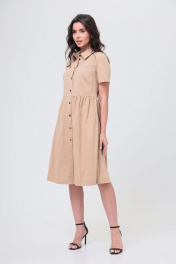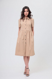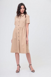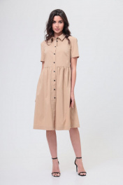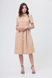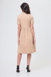 Платье выполнено из натуральной ткани, полуприлегающего силуэта, отрезное по линии талии. Рукав втачной, край обработан подгибкой . Горловина округлой формы с воротником стоечкой. Передняя часть платья дизайнерски оформлена планкой - застежкой с пуговицами.В боковых швах платья карманы. Платье без подкладки. Длина изделия по спинке в 42-48размере-105 см; 50-52размере -108 см, длинна рукава –21 см все размеры. (На фото модель 44р. рост -168см).