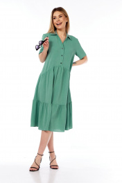 Эффектное платье, свободного силуэта.Платье из легкой летней ткани. Актуальный в этом сезоне, свободный силуэт платья, подойдёт для любых типов фигуры! Рукав втачной,свободного кроя.Воротник - стояче отложной со стойкой.По переду платья в области груди застежка на три петли и пуговицы. Платье выполнено в виде ярусов, которые красиво развиваються при ходьбе. Это элегантное платье женское офисное подчеркнет Вашу индивидуальность. Отсутствие подкладки добавляет легкости и удобства в жаркую погоду. Короткие рукава и сжатая фактура материала обеспечивает элегантный и современный внешний вид и практичность, так как материал не мнется и всегда выглядит безупречно. Платье женское больших размеров прекрасно подойдет для высоких и не высоких женьщин и для будущих мам. Нежное стильное платье производства Беларусь- это всегда стильно и качественно! Прекрасный вариант для праздника, для офиса и на каждый день. Длинна платья по спинке- 107см. Рукав -24см .(На фото модель 44р. рост -170см)