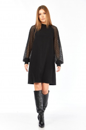 Элегантное платье-трапеция выполнено из плательной ткани станет незаменимым элементом Вашего гардероба и подойдет практически для любого случая жизни. Вечернее нарядное женское платье покажет все достоинства фигуры и скроет недостатки.Шикарный наряд , платье оверсайз, поможет вам не остаться незамеченной на любом празднике: новогоднем корпаративе, торжественном мероприятии и Новом году в кругу семьи, дне рождении или 23 февраля или 8 марта. Платье нарядное А-силуэта. По переду платья нагрудные выточки. Спинка разрезная. Каждый раз одевая его, вы будите ощущать себя в центре внимания. Шикарное платье А-силуэта не теряет актуальности уже который сезон. Застежка в виде банта на спинке платья. Рукав реглан выполнен из решилье, закончен манжетой на три пуговицы и воздушные три петли. Платье без подкладки. Длина изделия по спинке все размеры-93см, длинна рукава –60 см все размеры. (На фото модель 44р. рост -170см).