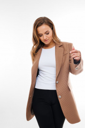 Превосходный пиджак из текстильной ткани(цветная бежевая гусиная лапка).Пиджак оверсайз прямого силуэта, назастежку- две пуговицы. Воротник стойка, по полочке, внутнренние карманы. Плечо спущенное, рукав длинный, на шнице с пуговицей. Премиальное качество. Идеально сочетается как с повседневным образом,так и деловым.