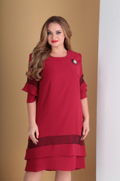 Платье нарядное А-силуэта с сеткой и воланом Tensi 279 вишня