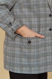 Лаконичный жакет в клетку — то, что нужно, чтобы подчеркнуть ваш утонченный вкус и уникальность. Такой вид одежды будет уместен как в офисе, так и за его пределами. Модель полуприлегающего силуэта с центральной бортовой застежкой на две петли и пуговицы. На переде обработаны нагрудные вытачки, накладные карманы, декорированные патами. Спинка со средним швом. Рукав втачной, длинный, с отложной манжетой, легко трансформируется в длину 7/8 благодаря притачной пате. Горловина обработана английским воротником. Фурнитура может отличаться от представленной на фото. Длина жакета от центра горловины спинки до низа: 71,5 см — для р-ров 48-52; 72,5 см — для р-ров 54-58; 73,5 см — для р-ров 60-64. Длина рукава(в застёгнутом виде): 51 см.