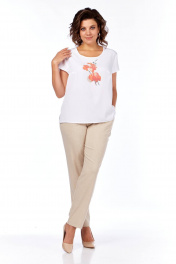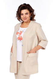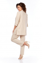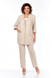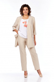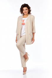 Комплект из блузы, брюк и жакета, демисезон, свободный стиль Tensi 372 бежево-оливковый+белый