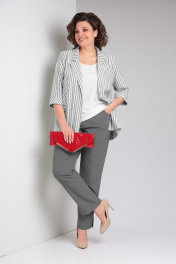 Женский летний комплект из жакета, брюк и блузы в полоску Tensi 374 серый+белый