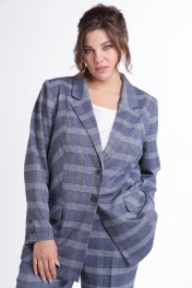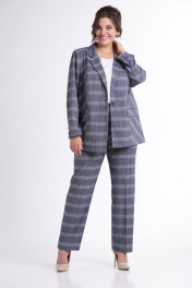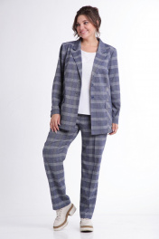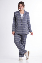 Костюм-двойка с жакетом и брюками в клетку для повседневных образов Tensi 383 клетка_на_джинсовом_фоне
