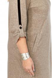 Стильное трикотажное платье с рукавом реглан выдержано в лаконичном дизайне и легко вписывается в базовый гардероб. Модель выполнена из мягкого эластичного трикотажа, комфортно садится по фигуре и обеспечивает свободу движений. Перед с нагрудными вытачками, планками горловины, застёжкой на акцентную молнию. Спинка со средним швом. В боковых швах разрезы. Рукав покроя реглан с вертикальной вставкой из отделочного материала, снизу присобран патой. Отделкой изделия служит фурнитура( может отличаться от представленной на фото). Длина от центра горловины спинки до низа для размеров 52-56 — 103 см, для размеров 58-62 — 105 см. Длина рукава с учётом плеча для размеров 52-56 — 59 см, для размеров 58-62 — 60 см.