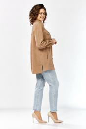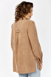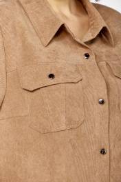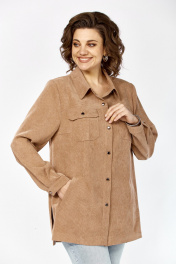 Стильная вельветовая рубашка— идеальный выбор для Вашего гардероба: она универсальна, комфортна и всегда в тренде. Легко сочетается с джинсами, брюками и юбками, одинаково уместна как для прогулки по городу, так и для уютного вечера с друзьями. Мягкий микровельвет добавляет образу тепла и текстуры, а свободный крой — лёгкости и современного звучания. Рубашка прямого кроя с застёжкой-планкой на шесть петель и пуговиц. На переде обработаны нагрудные вытачки, кокетки, накладные карманы с клапанами, прорезные карманы с листочками. Спинка с кокеткой, складкой и отделочным клапаном по центру. Рукав втачной, длинный, по низу застёгивается манжетой с пуговицей. Воротник стояче-отложной с отрезной стойкой. В боковых швах разрезы, низ рубашки разноуровневый. Отделкой изделия служит фурнитура(может отличаться от представленной на фото). Длина жакета от центра горловины спинки до низа: в 52-56 р-рах — 78.5 см; в 58-62 р-рах — 80 см. Длина рукава: 61 см.