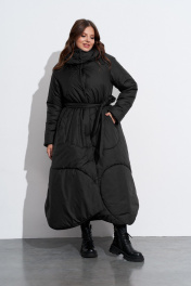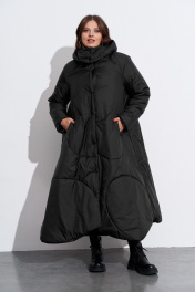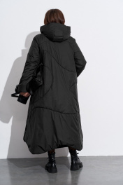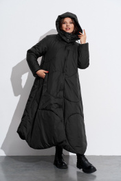 Пальто утепленное с хаотичной отстрочкой и съёмным капюшоном TEZA 5598 черный