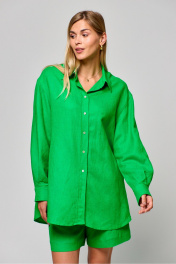 Рубашка свободного кроя, воротник-стойка, по переду отстроченная планка с застежкой на петли-пуговицы .Яркая льняная рубашка — лучший вариант для лета.Льняная ткань при всем современном многообразии остается классическим натуральным материалом с ценными свойствами. Изделия изо льна славятся своей износостойкостью и замечательными эксплуатационными характеристиками. Рубашку можно накинуть поверх топа, либо носить самостоятельно. Длина рукава от линии шва – 57 см Ширина плеч – 51 см Длина изделия – 81 см.Рекомендуется ручная стирка или стирка на низких оборотах стиральной машины.