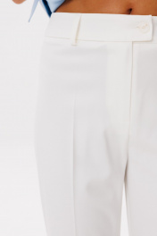 Классические расклешенные брюки полупрелегающегоьсилуэта с высокрй посадкой, пояс притачной со шлевками, застежка на молнию и петлю-пуговицу, брюки без карманов. Выполнены из ткани костюмной группы. Длина по боковому шву 111 см, полуобхват талии 35 см, полуобхват бедер 45 см , высота посадки 30 см в 42-м размере. Брюки можно сочетать с жакетом арт 2382
