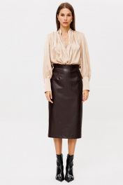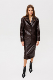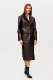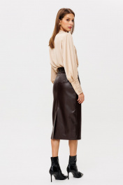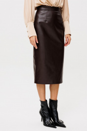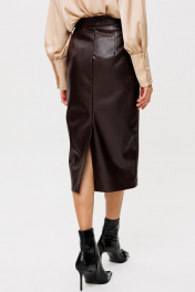 Юбка миди из экокожи с высокой посадкой и шлицей THE NAME 2352 шоколад