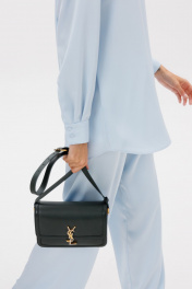 Комплект двухпредметный из рубашки и брюк. Нежный комплект в красивом голубом оттенке, брюки или рубашку вы всегда сможете носить отдельно. Образ сочетает в себе шик и расслабленность. В комплекте идет сьемный пояс из основной ткани. Прямые брюки из струящегося атласа бесспорно станут вашим фаворитом в гардеробе, талия высокая, брюки на резинке , длина по боковому шву 110 см.Вещи из атласа отлично вписываются в любой стиль и подходят для разных поводов, удобная посадка, не сковывают движения. Роскошная блуза из атласной ткани в необычном мраморном сером цвете. Рубашка свободного кроя с заниженной линией плеча.Рукав рубашечный, длинный с притачной манжетой. Застёжка центральная на петли - пуговицы. Низ блузки фигурной формы. Воротник стояче-отложной с отрезной стойкой. Длина по спинке 71 см, длина рукава от линии шва 55см.