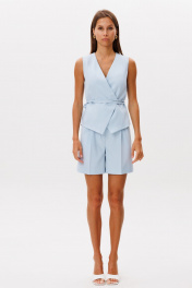 Классические шорты можно носить по-отдельности , а чтобы получить максимум комфорта, можно включить в образ дополнительный слой – жилет или жакет, которые можно снять при необходимости, орбатите внимание на наш жакет в цвет основного изделия арт 2405. Шорты без подкладки, притачной пояс со шлевками, застежка на петлю-пуговицу. По переду защипы, высокая посадка,карманы боковые.Длина изделия 45 см. По талии 33 см в 42 размере.