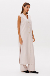 Кардиган свободного кроя, на подкладке из хлопка, застежка центральная на петли-пуговицы, функциональные карманы в боковых швах, по бокам разрезы, зафиксированные отделочной строчкой. Можно носить в качестве верхней одежды, используя в повседневных образах. Рекомендуем брюки из нашей коллекции в цвет основной ткани арт. 2393, или изделия из атласа, костюм арт. 2312, также можно носить с юбками, джинсами.