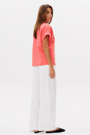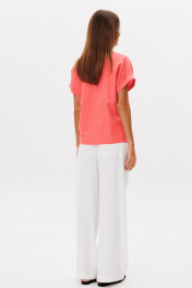 Брюки свободного кроя, пояс на резинке со шнурком, карманы в боковых швах. Брюки на подкладке из шортиков, ткань французский креп, не мнутся. Посадка высокая. Длина по боковому шву 110 см, по внутреннему шву - 76 см. Образ можно дополнить жакетом, джемпером, рубашкой, или топом из нашего ассортимента из основной ткани, арт. 2392