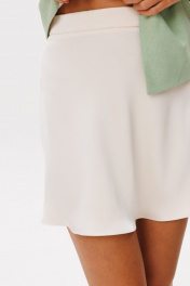 Юбка --мини из атласной ткани, на притачном поясе, сбоку застегивается на потайную молнию, юбка А-силуэта. Данная юбка будет также уместна осенью, зимой в сочтетании со свитерами, жакетами и сапогами.Длина по боковому шву 50 см, по талии 35 см в 42-м размере.