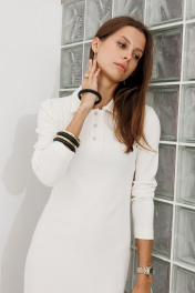 Лаконичное, базовое трикотажное платье-поло прилегающего силуэта выполнено из мягкого трикотажа, рукав втачной, по переду планка-застежка на функциональные петли-пуговицы, отложной воротник. Платье тактильно приятное к телу, сочетается с любой обувью, трикотаж не просвечивает, держит форму. Длина по спинке 89 см, рукав 61 см. Рост модели на фото 178 см.