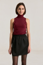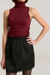 Атласная мини-юбка прямого кроя, на резинке, по низу кружево, пояс обработан декаративной тесьмой. Атлас плотный, не просвечивает. Юбку можно носить с топами, свитерами, жакетами, рубашками в любое время года. Длина юбки по боковому шву с кружевом 44 см. Рост модели на фото 178 см.