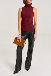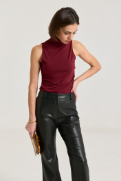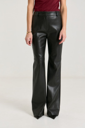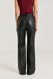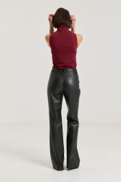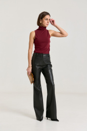 Классические расклешенные брюки прилегающего силуэта с высокой посадкой, пояс притачной со шлевками, застежка на молнию и петлю-пуговицу, брюки без карманов. Выполнены из мягкой экокожи на замшевой основе. Брюки клеш с высокой посадкой подчеркивают женственность фигуры, зрительно удлиняют ноги и красиво вытягивают силуэт. Длина по боковому шву 109 см, полуобхват талии 34 см, полуобхват бедер 46 см , высота посадки 30 см в 42-м размере.