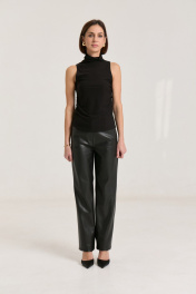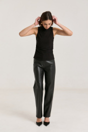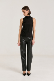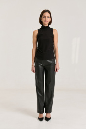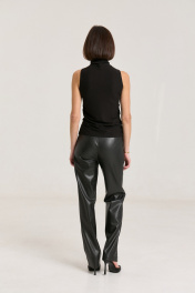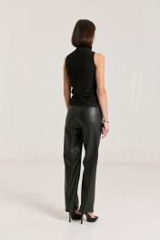 Брюки прямые, пояс притачной со шлевками, застежка на петлю-пуговицу, по переду гульфик с застежкой на молнию, сзади имитация карманов на задних половинках брюк, спереди боковые функциональные карманы, посадка высокая.Классический крой отлично гармонирует с мягкими свитерами и полупрозрачными блузками, выполнены из мягкой экокожи на "замшевой" основе Длина по боковому шву 103 см полуобхват талии в 42-м размере 34 см, полуобхват бедер в 42-м размере 43 см. Рост модели на фото 178 см.