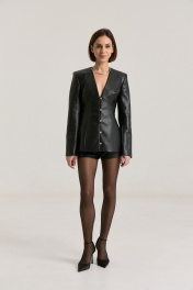 Шорты прилегащего силуэта, на подкладке, в боковом шве молния. Шорты выполнены из мягкой экокожи черного цвета.Шорты красвио сочетаются со свитерами, футболками, лонгами, летом можноносить с топами и босоножками. Можно носить в комплекте с нашим жакетом арт. 2463 из экокожи. По боковому шву 36 см , полуобхват талии в 42-м размере 33 см.Рост модели 168 см.