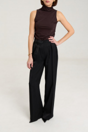 Джемпер выполнен из трикотажной ткани премиального класса, ткань плотная, мягкая, не просвечивает. Горло цельнокроеное высокое, за счет этого можно его драпировать либо носить с подворотом, по бокам защипы, что придает фигуре стройности, за счет красивых линий складок.,длина по спинке 59 см.