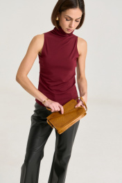 Джемпер выполнен из трикотажной ткани премиального класса, ткань плотная, мягкая, не просвечивает. Горло цельнокроеное высокое, за счет этого можно его драпировать либо носить с подворотом, по бокам защипы, что придает фигуре стройности, за счет красивых линий складок.,длина по спинке 59 см.
