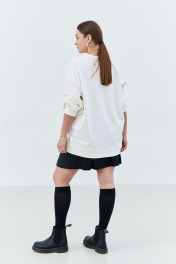 Оверсайз свитшот из трикотажа с удлиненным силуэтом THÉA club 2002 молочный