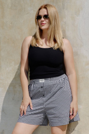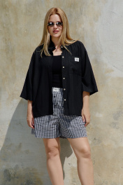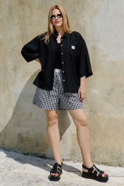 Шорты расширенного силуэта из легкого текстиля с разрезами THÉA club 5007 черно-белая_клетка