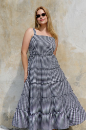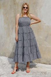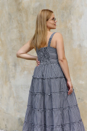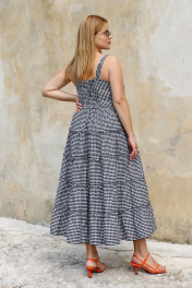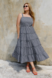 Миди сарафан с отрезным лифом и горизонтальными швами THÉA club 7002 черно-белая_клетка