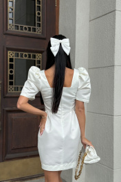 Платье-футляр с рукавами буф,складки на по линии бёдер Рост модели 176 см. Длина -80 см, рукав -32 см,талия -68,бёдра-99 см