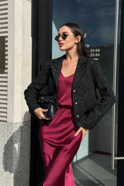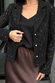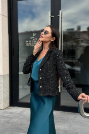 Жакет из твида с люрексом классического кроя. Рост модели 176 см. Длина -58 см, рукав -59 см ,обхват груди -90 см