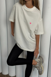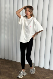 Блуза оверсайз трикотажная с короткими рукавами и крупной печатью THE.WOMAN 0286 молочный