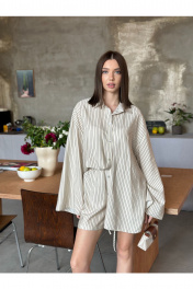 Рубашка, шорты THE.WOMAN 0323 бежевый_черная_полоска