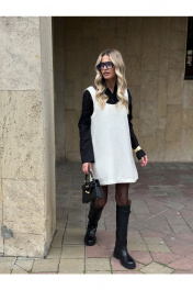 Сарафан из твида, свободного кроя, вточные карманы по бокам. Рост модели 168 см. Длина-84 см, обхват груди-92 см, обхват талии-100 см, обхват бедер-114 см.