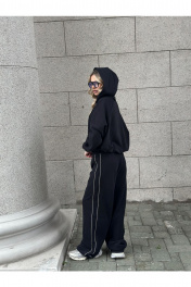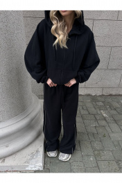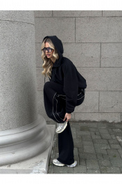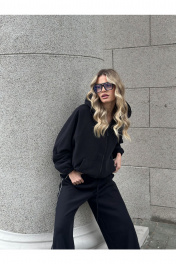 Блейзер на молнии с капюшоном, спущенная линия плеча, низ изделия можно регулировать кулиской. Рост модели 168 см.Длина-62 см,рукав-82 см, обхват груди-120 см, обхват талии-125 см.