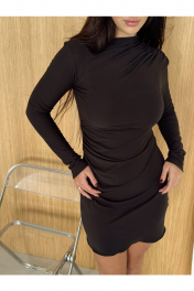 Платье в длине мини приталенного кроя, с красивой линией декольте и сборкой на талии. Рост модели 168 см. Длина-92 см, рукав-64 см, обхват груди-82 см, обхват талии-70 см, обхват бедер-82 см.