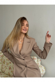 Платье-жакет приталенного кроя на подкладке. Рост модели 168 см. Длина -84 см, рукав-62 см, обхват груди-84 см, обхват талии-72 см,обхват бедер-102 см.