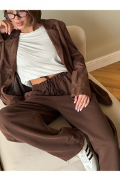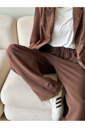 Брюки спортивные оверсайз на резинке из премиальной ткани. Идут в двух ростовках на 164 см и 170 см. Рост модели 168 см. Длина-104 см,обхват талии-64 см, обхват бедер-116 см.