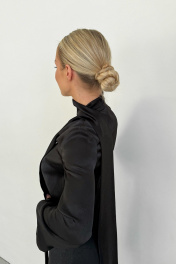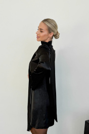 Платье-А силуэта, с акцентным элементом эмитации банта. Рост модели 168 см. Длина -92 см, рукав-65 см, обхват груди-86 см, обхват талии-80 см,обхват бедер-102 см.