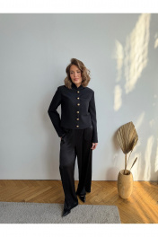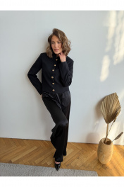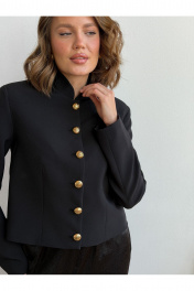 Жакет укороченный прямого кроя в гусарском стиле. Рост модели 168 см. Длина-60 см, рукав-62 см, обхват груди-92 см, обхват талии-92 см.
