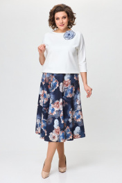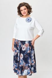 Джемпер, юбка T&N 7501 молочный+синие_цветы - фото 1