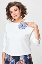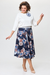 Джемпер, юбка T&N 7501 молочный+синие_цветы - фото 2